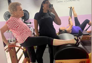 Aulas de pilates focadas na melhora da flexibilidade, força e postura, adaptadas a cada paciente.